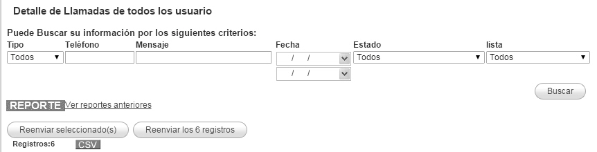 2.- Teléfono: Buscar el detalle de envío o respuesta de un teléfono en especifico.