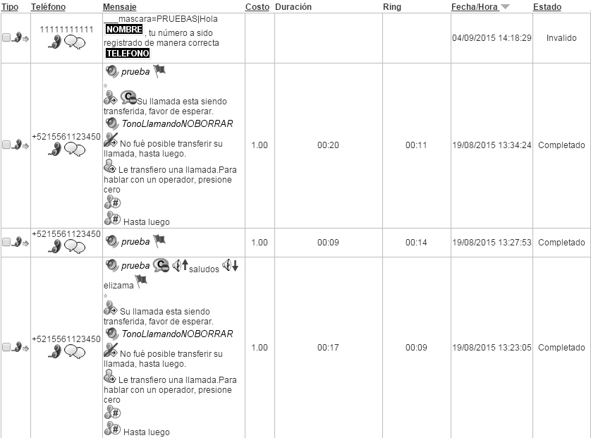3.- Costo : Costo de la llamada.