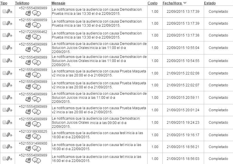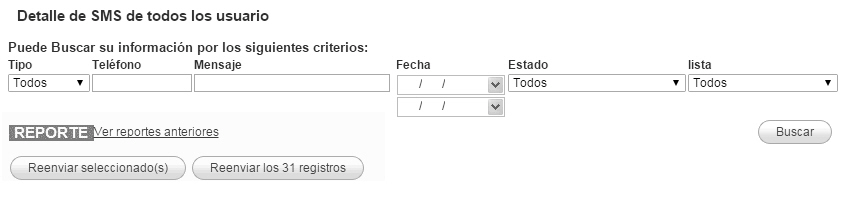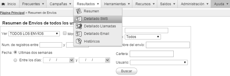Al elegir esta opción podrás ver el detalle de todos tus envíos SMS. La información mostrada será.: